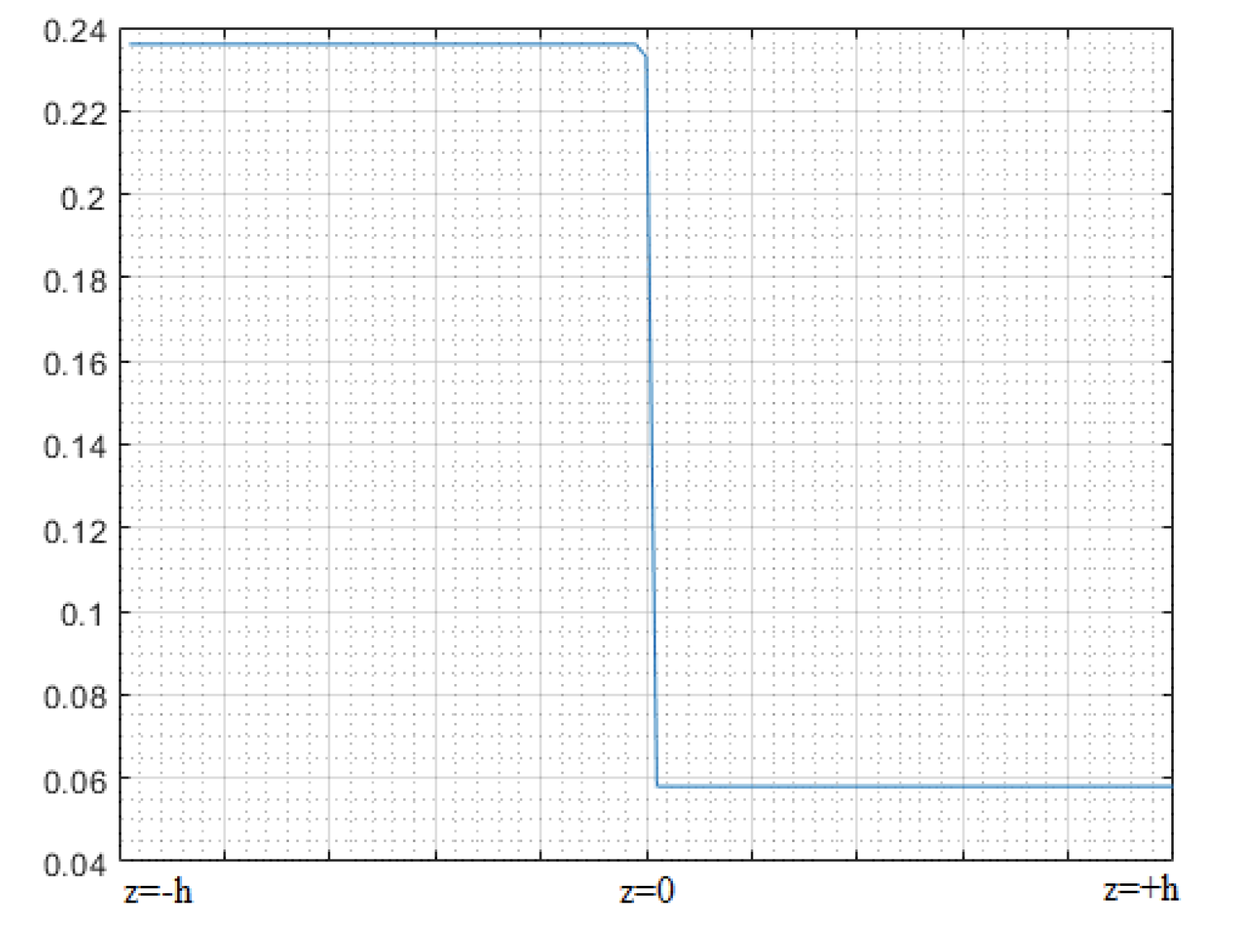 When modeling the welding process for large thicknesses (from 3 cm or more), the authors encountered the following phenomenon: when determining the optimal focal length using the minimum of the functional (2), the extremum of the function is not observed (Fig. 9).