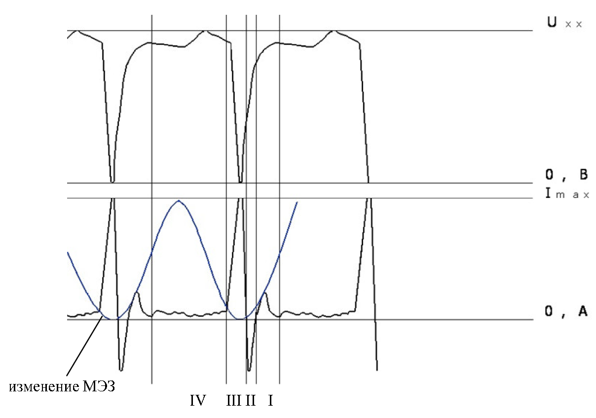 Рис. 2. Осциллограмма напряжения и тока ЭКХО