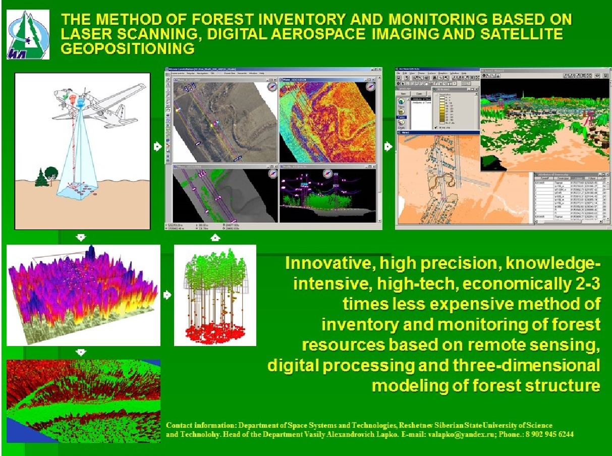 The goal of the project is to create an innovative educational and scientific center for training highly qualified engineering personnel, conduct advanced scientific research in the development of new methods for remote sensing of forests and other natural resources, develop a complex of objective and high-precision control and monitoring of the state of forest resources and forest management in Siberia based on integration of laser and microwave aerial and space photography and satellite geopositioning, which are the basis of a fundamentally new system of monitoring, modeling, forecasting and forest resource management [19; 20].
