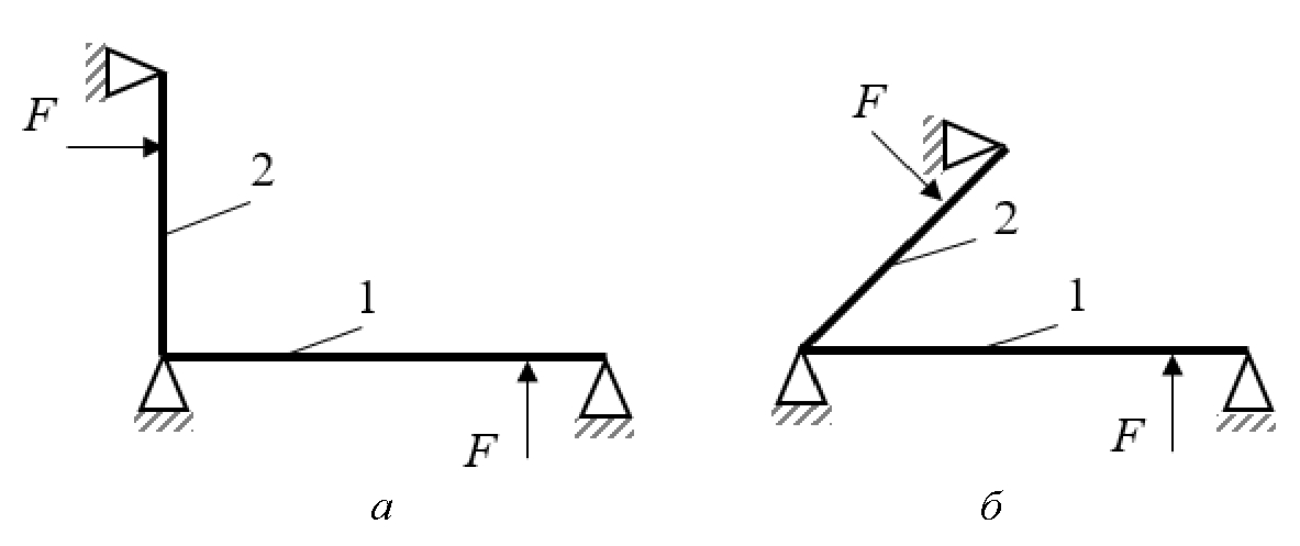 Рис. 1. Варианты соединения двух балок: а – угол равен 90°; б – угол равен 45°