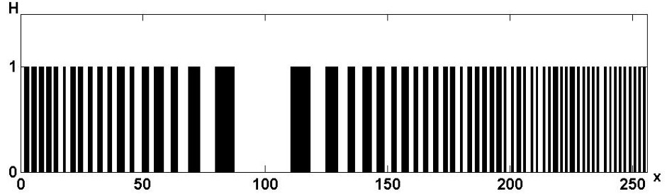 Fig. 1 demonstrates a linear hologram of an 8-bit input data block with a value of X = 99, with the size of the hologram recorded in the memory is 256 bits, the redundancy factor is 32.