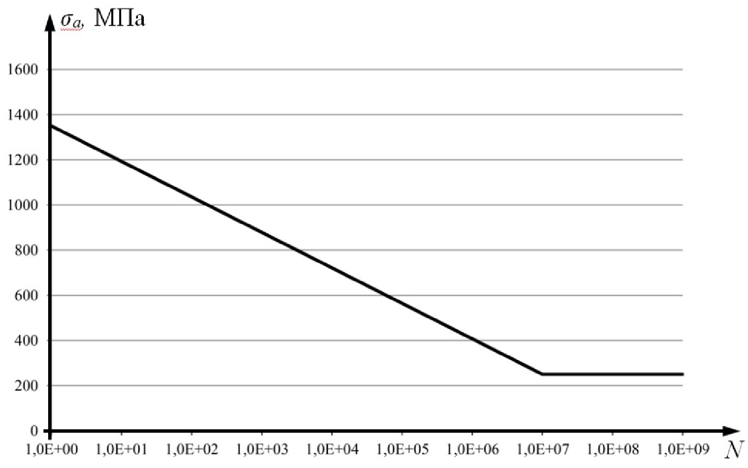 Under cyclic loading, the strength of the material is assessed by the safety factor for fatigue strength based on the Weller fatigue curve [21; 22], which determines the dependence of the material’s endurance limit on the number of loading cycles (Fig. 4).