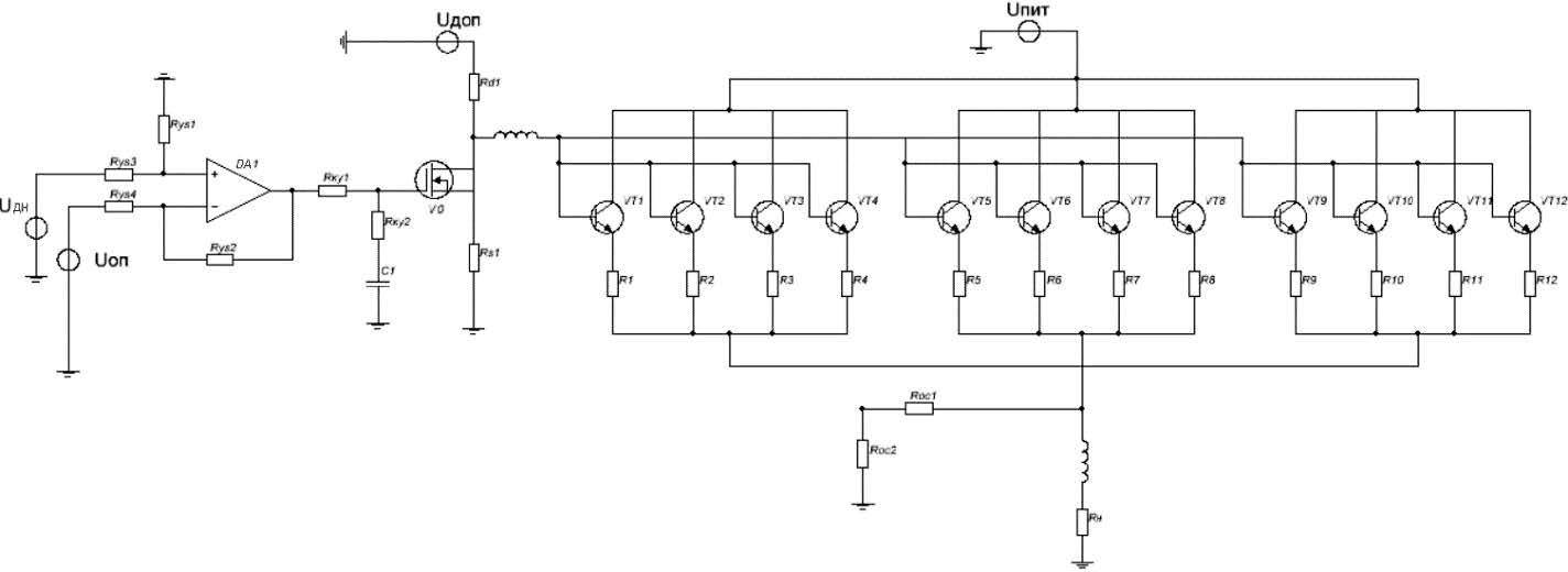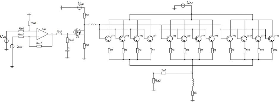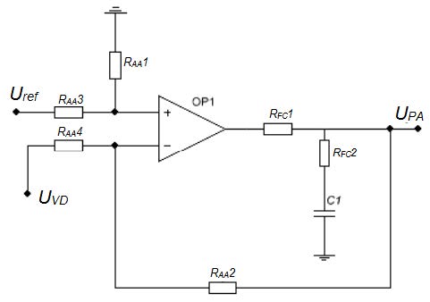 The third method of regulating the IFR of the PSSS is based on changing the RFC1 and RAA2 resistances of the third type of the AA – active, made on the summing operational amplifier (Fig. 13).