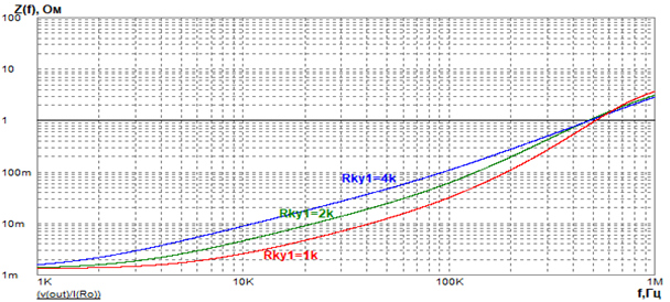 Рис. 17. ИЧХ замкнутой системы управления модуля ИСЭП при изменении сопротивления RКУ1 (способ 3)