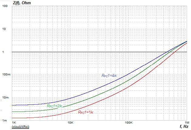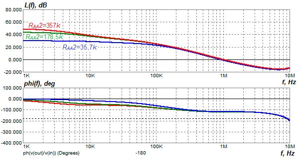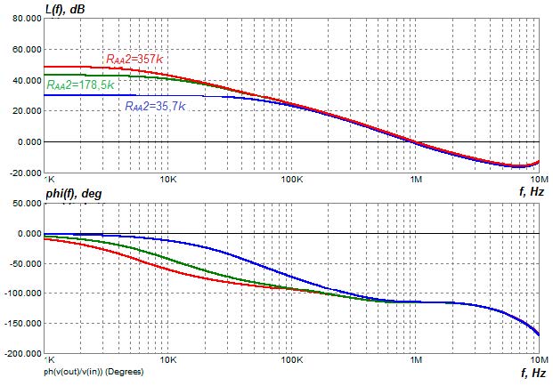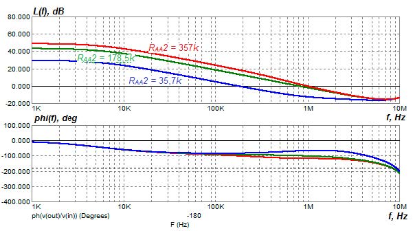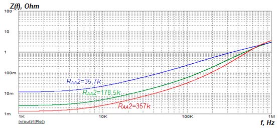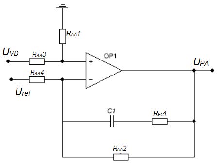 The disadvantage of this method is that when changing the feedback resistance RAA2, the MF region of the IFR is deformed, which complicates the selection of the value of resistance RFC1 of the FC.