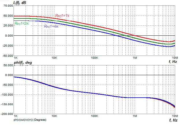 The results of measuring the LFC of the open loop system when the feedback RAA2 resistance and the RFC1 resistance are changed are shown in Fig. 9 and 10, respectively.