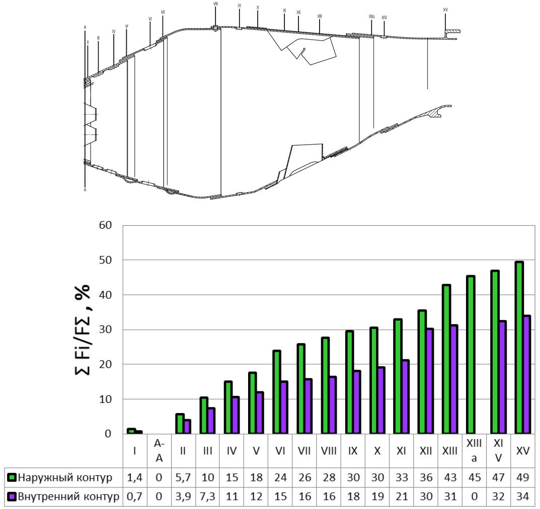 Рис. 4. Распределение воздуха по длине жаровой трубы