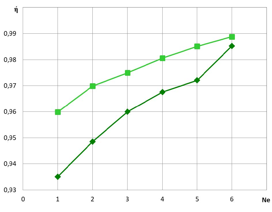 The combustion efficiency is significantly higher when using natural gas (Fig. 8), and its increase is noted with an increase in the engine operating mode.