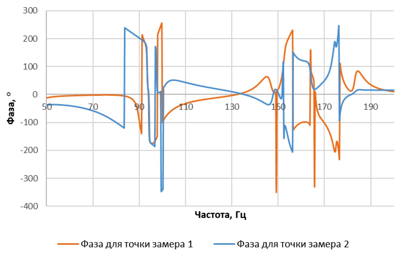 Рис. 2. Фазы совпадающих точек замера двух соседних замеров