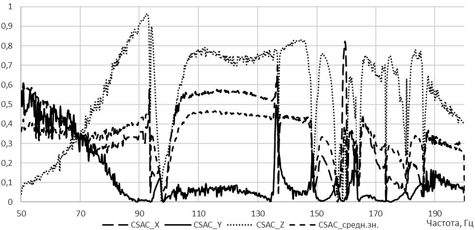 Рис. 5. Значения критерия CSAC по FRF виброперемещениям