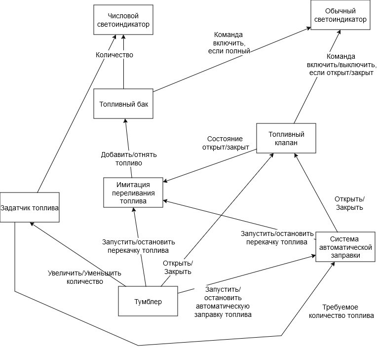 Рис. 2. Схема структуры и связей имитационной модели пульта заправки