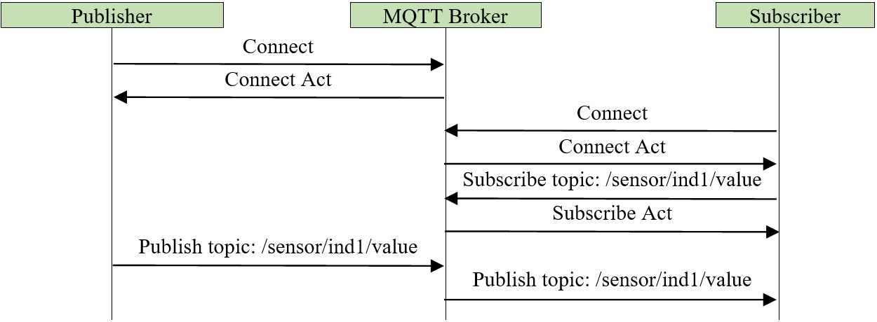 The following entities participate in data exchange: Publisher is a device that collects information or performs measurements; Subscriber is a client that receives and uses this information in the course of its work; Broker is an intermediary that receives data from the publisher and distributes it by subscription to topics that determine the type and source of information. The mechanisms of information interaction in the developed Internet of Things network take into account the cyclical nature of the analyzed processes, which allows reducing the load on information consumers and the networks used [28].