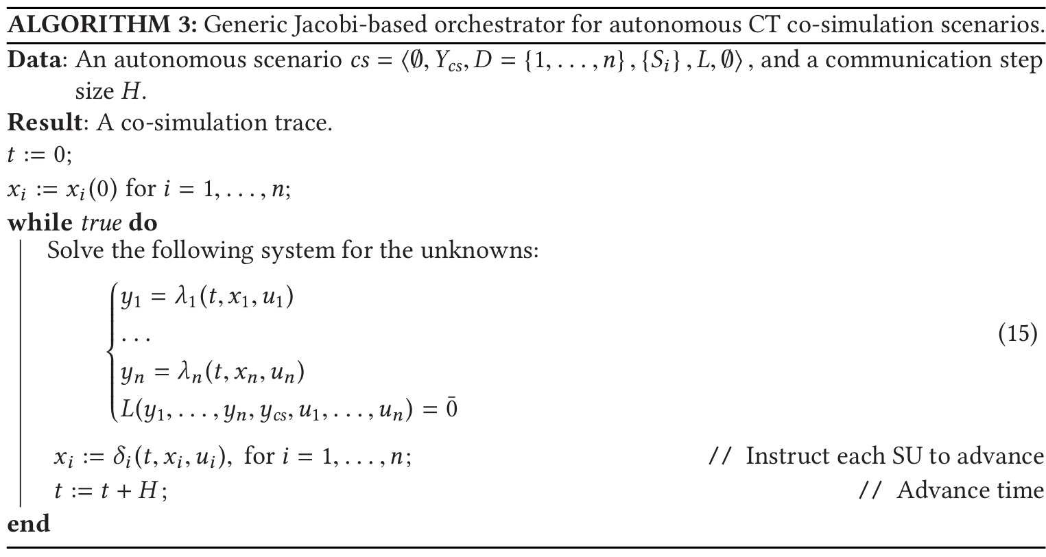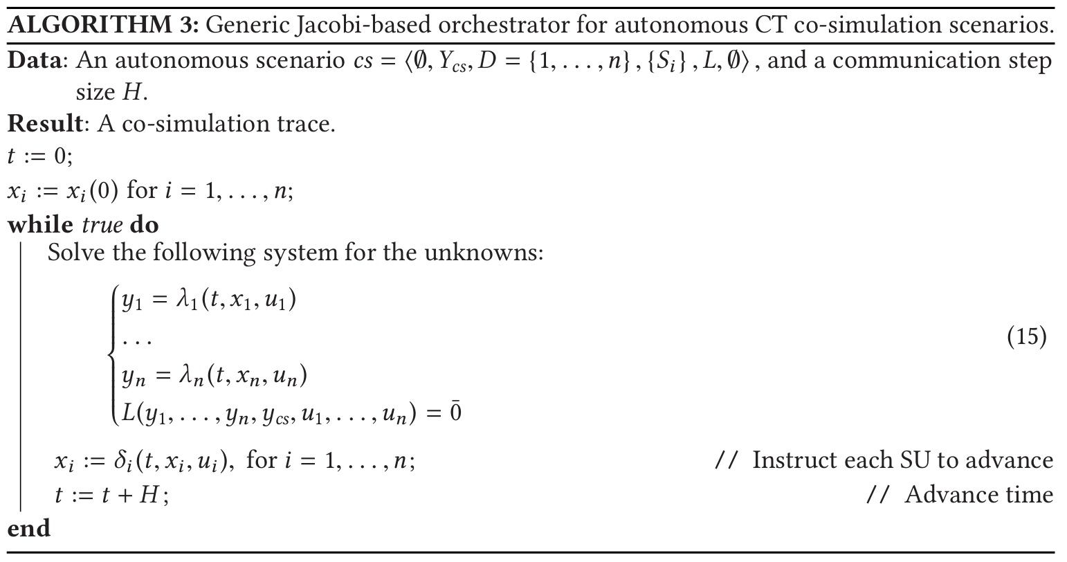 Fig. 2 shows a generalized orchestrator algorithm for continuous-time systems. It explicitly identifies a cycle over model time, in which: