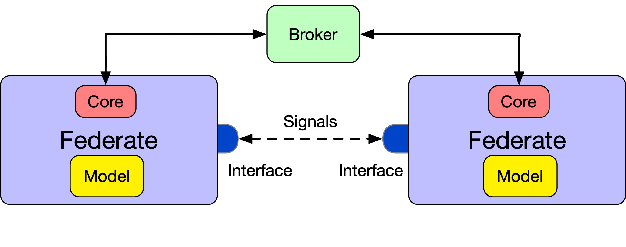 5. Fig. 3. Base architecture of HELICS framework [5]. Here Federate is a computational module containing a core (simulation control and message interface) and executable model code