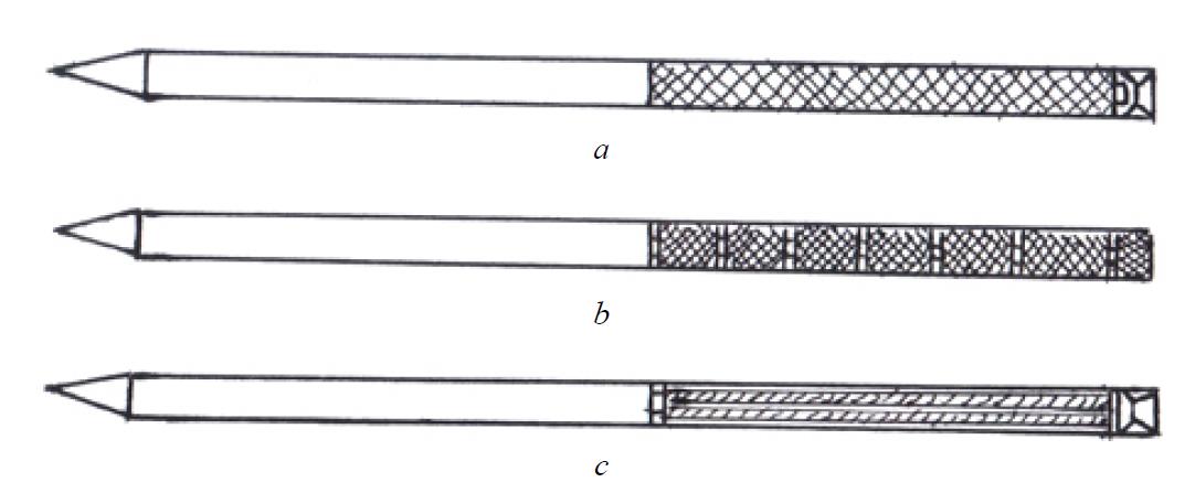 To ensure the movement of SPART through the soil at optimal speed due to the operating engine, a motor with end-burning of the propellant (cigarette burn) can be used (see Fig. a).