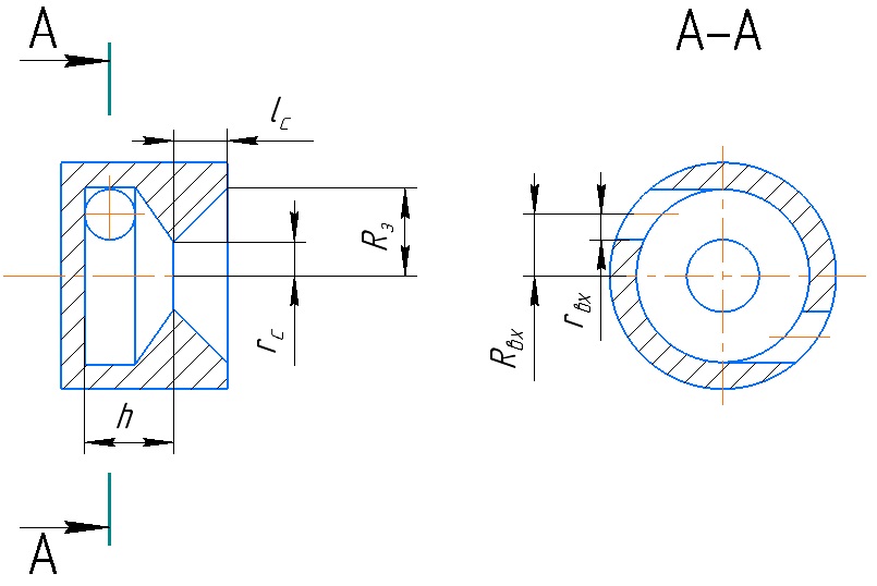 A single-component centrifugal injector with tangential component supply was selected as the fuel injector. The injector diagram with the main designations is shown in Fig. 3.