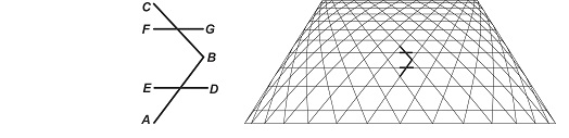 Рис. 4. Типовой элемент сетчатой структуры конической оболочки