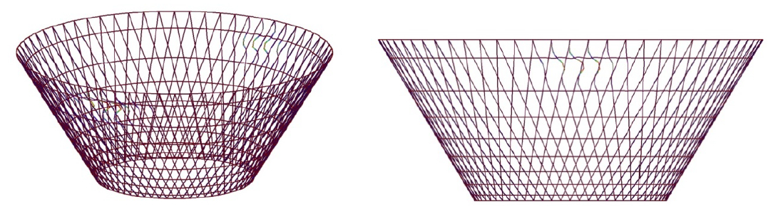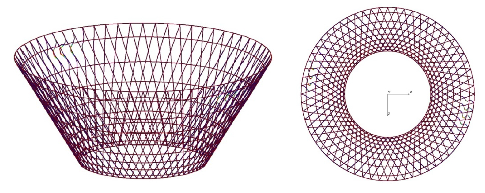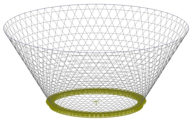 Рис. 5. Модель сетчатой конической оболочки с закрепленным малым основанием