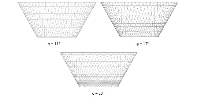 As the approach angles increase, the density of the grid at the small base increases (Fig. 8). Accordingly, the mass of the structure also increases.