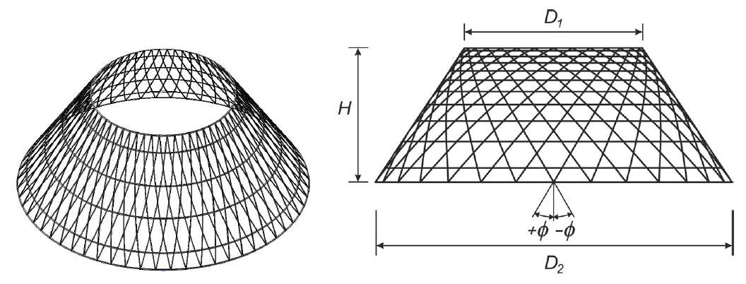 Рис. 3. Геометрическая модель сетчатой конической оболочки