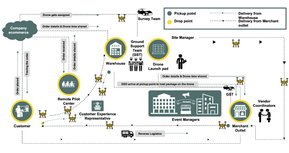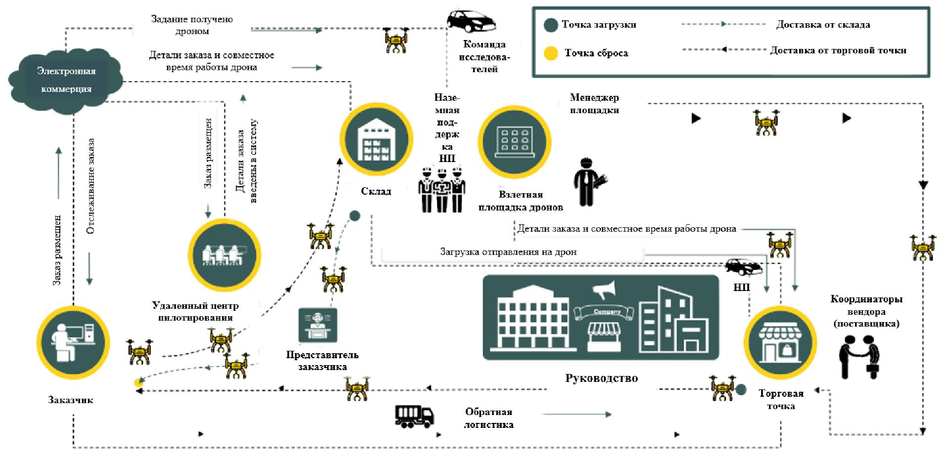 Рис. 1. Инфраструктура доставки отправлений дронами