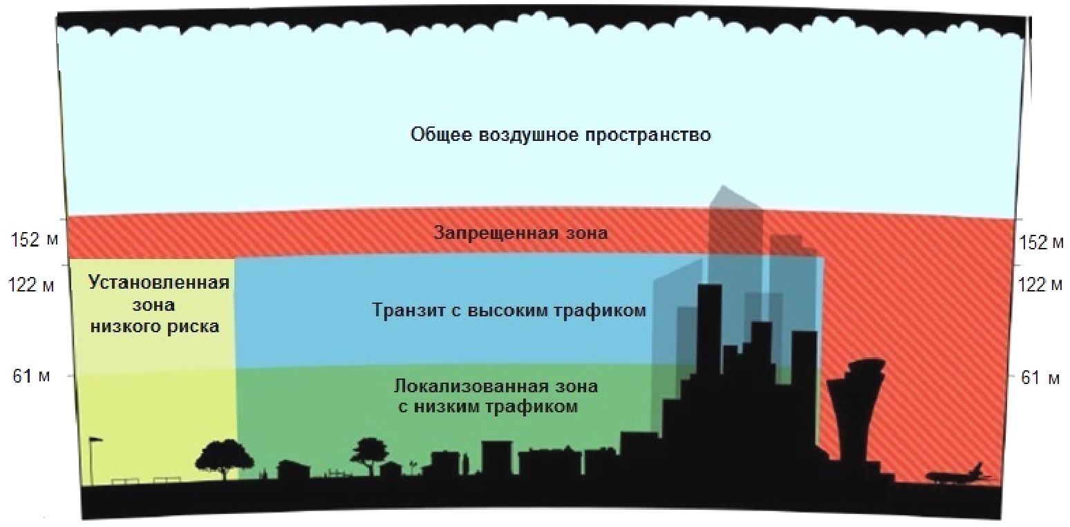 For the operation of unmanned, especially automatic, robotic vehicles, they require sites for testing, charging batteries (or refueling), navigation systems and maneuvering between buildings and structures, especially in urban areas, where there are many zones with a ban on flights for a number of reasons (Fig. 2).
