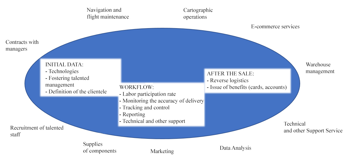 Currently, each country in the world has developed special rules for the use of drones, since they can pose a danger to aircraft, urban infrastructure, as well as people and animals. Moreover, the system of operating unmanned vehicles has quickly developed into a large, including bureaucratic, network. Today, the following structures are involved in the drone delivery service in each country (Fig. 1):