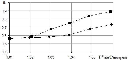 where , , , , are the air mass flow rate, its temperature, the total pressure at the burner inlet, and the barometric pressure, respectively. B is determined at various pressure drops.