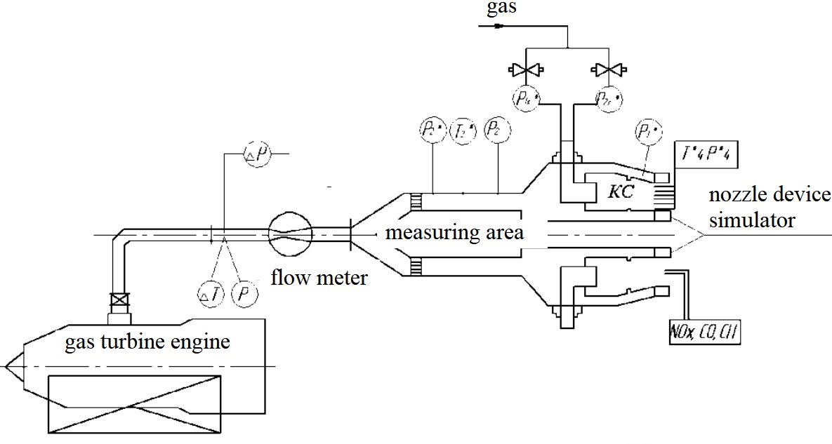 During the tests, measurements are taken of the total air pressure at the chamber inlet Р2*, in the gap between the chamber casings and bodies near the cooling air supply pockets Рnar * and Рvn * (from the outer and inner sides, respectively), and at the chamber outlet Р4*