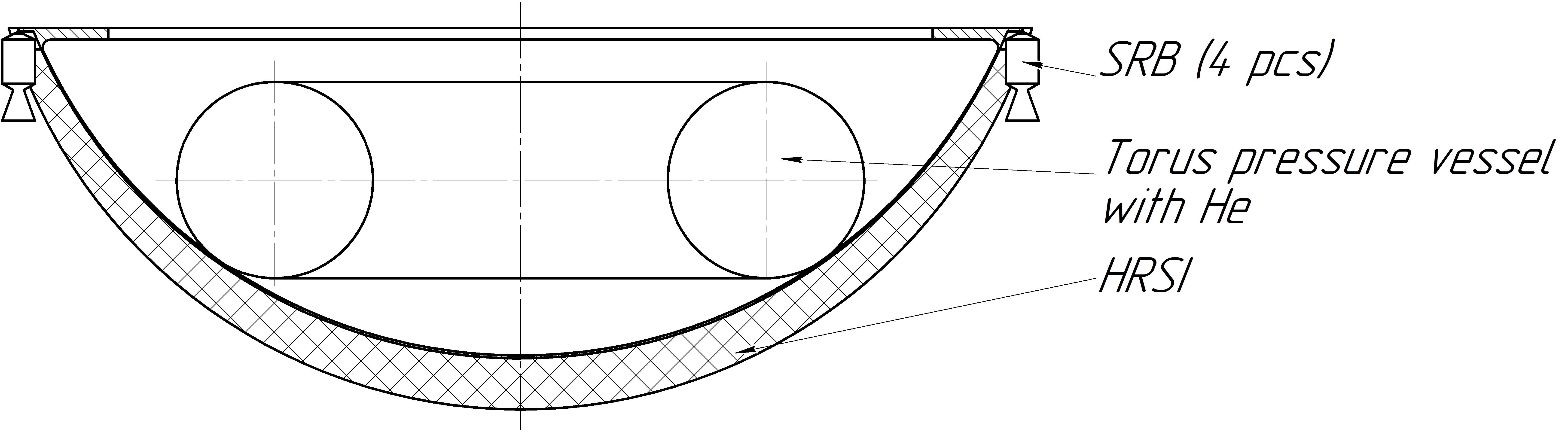 250.0 | 71.0 | Compressed helium | Torus cylinder | SPREs (4 pcs) | Housing with FSP (fuel supply point) | Total weight |
