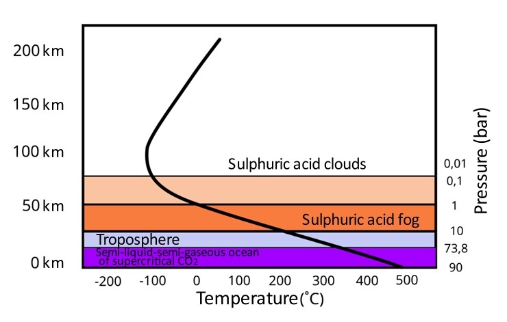 However, at an altitude of just over 50 km there is the tropopause – the boundary between the troposphere and the mesosphere. Here, the conditions are most similar to the conditions on the surface of the Earth. This is the optimal area for SC, where the temperature and pressure will be similar to those on Earth.