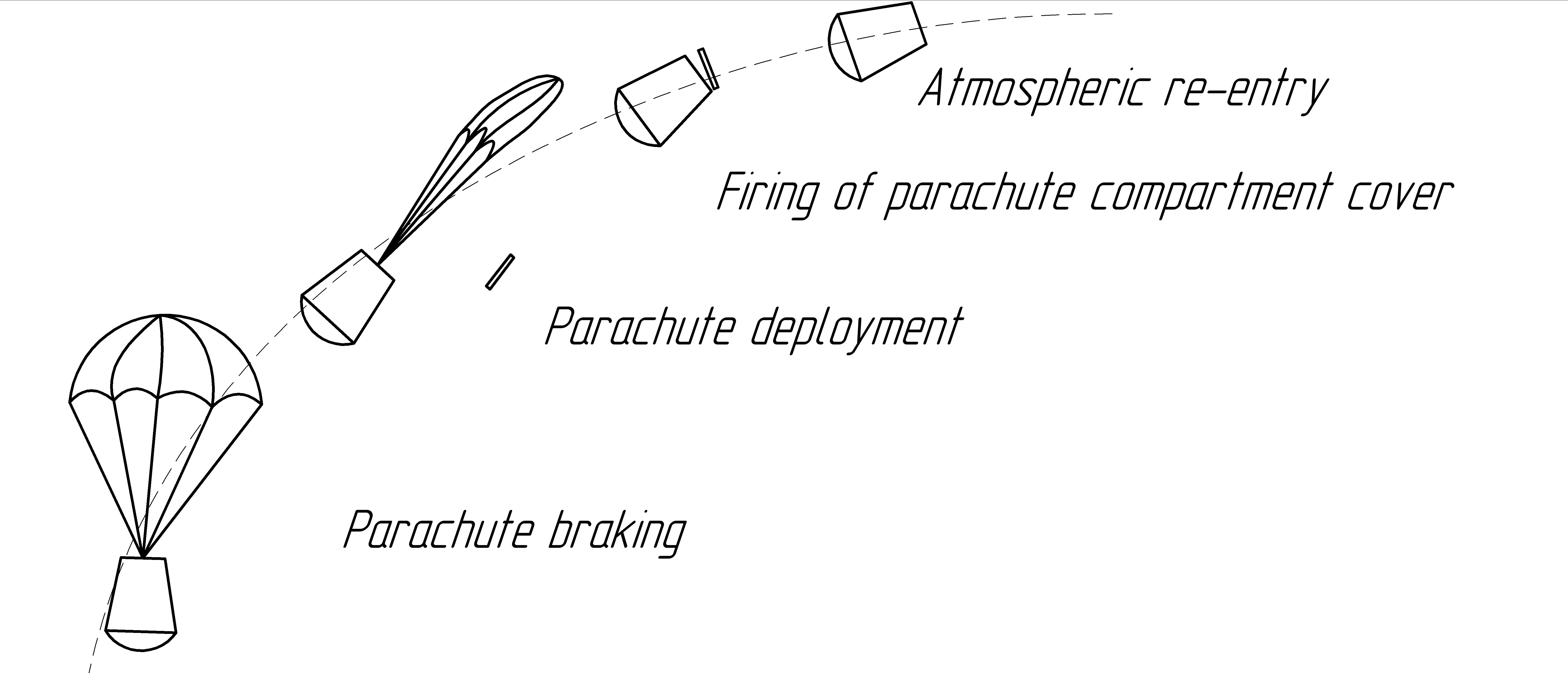 - the undocking of the orbital module and the ballistic reentry of the probe itself into the atmosphere.