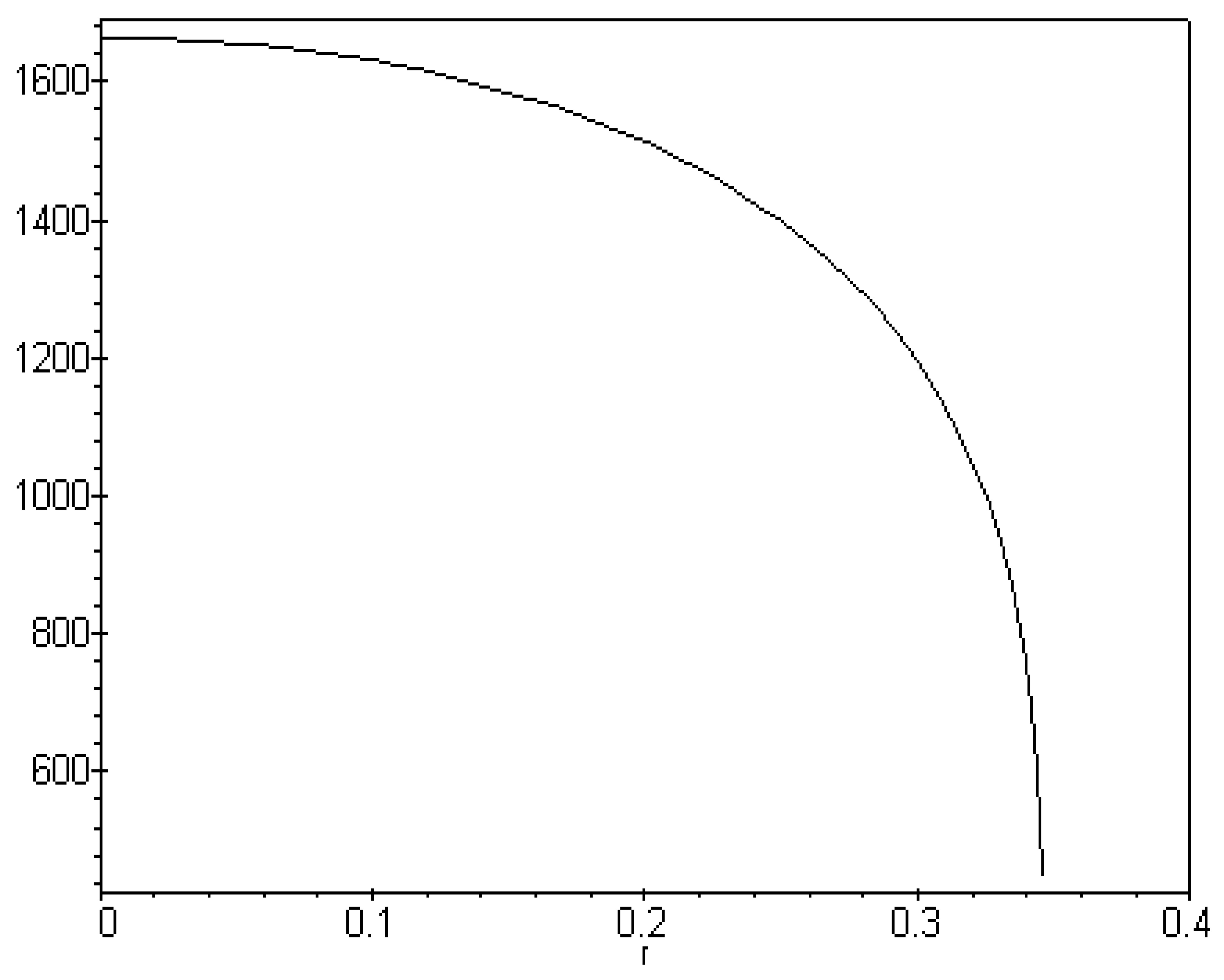 Рис. 2. Зависимость оптимальной температуры первой ступени от относительного радиуса R при значениях параметра Da = 1º и угла Q = 60º для температуры плавления BeO