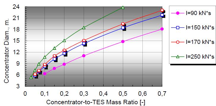 - concentrator diameter Dc, its focal parameter F1 and mass Mk;