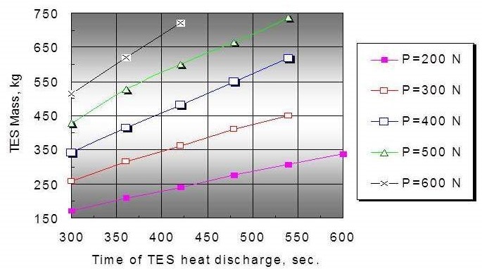 The payload mass depends on the flight time according to the dependencies shown in Fig. 7, for different values of the single thrust impulse with a corresponding change in the parameter [p]. The results in Fig. 3, 5 and 6 demonstrate that varying the combination {Isingle, [p]} allows to identify areas of appropriate values of thrust and discharge time of the TES in the field of values {Mpl, Dc}. Small values of Isingle < 90 kN*s are only advisable for flight time exceeding 90 days, which requires solving complex technical problems of storing cryogenic hydrogen. Large values of Isingle > 300 kN*s are typical for the case of ТS< 30 days with a significant reduction in the mass of the payload. Thus, for ТS= 20 days we have rational values Isingle = 390 kN*s at [p] = 0.3, corresponding to a PL mass of 1250 kg.