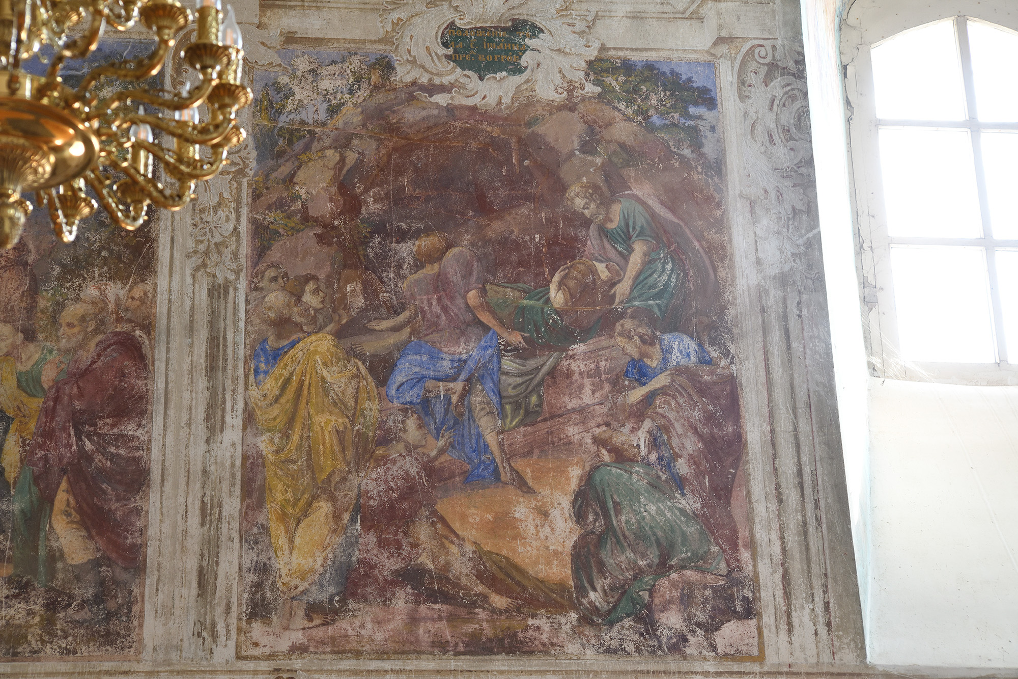 Драматическим экспрессионизмом отличается роспись «Положение тела Иоанна Предтечи во гроб». Обезглавленное тело является центром динамически выстроенной композиции. Момент положения в гроб подчёркивается направленным движением по кругу. Сюжет замыкается сводами из тёмных каменных глыб, увенчанных барочным живописным обрамлением в виде иллюзорных лепных листьев аканта с подписью.