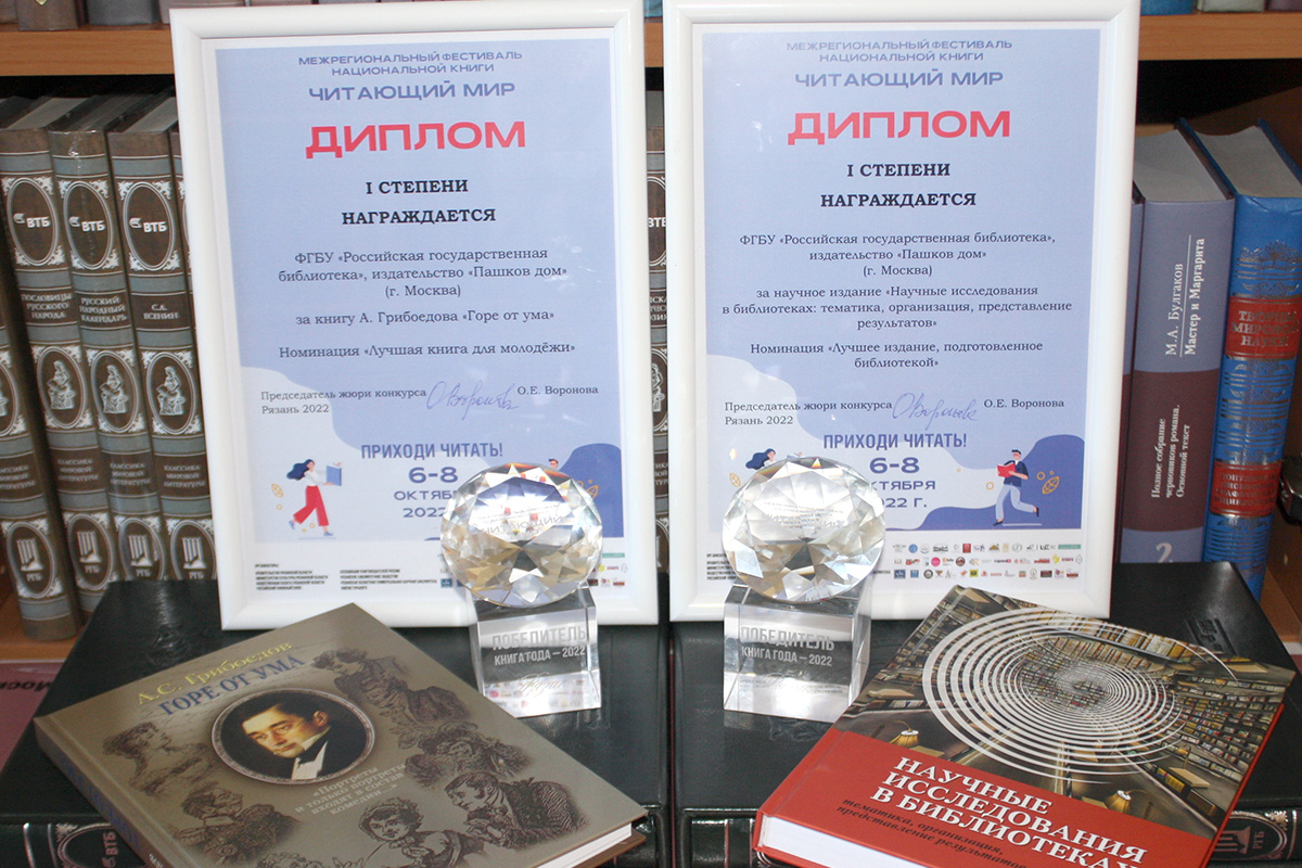 Перечисляя все значимые события, сопутствующие появлению в современном книжном мире юбилейного издания комедии «Горе от ума», важно отметить, что в октябре 2022 г. книга была представлена на Межрегиональном фестивале национальной книги «Читающий мир», традиционно проходившем в Рязани, а по итогам конкурса «Книга года» грибоедовская комедия «в исполнении» издательства «Пашков дом» была удостоена первой премии в номинации «Лучшая книга для молодежи».