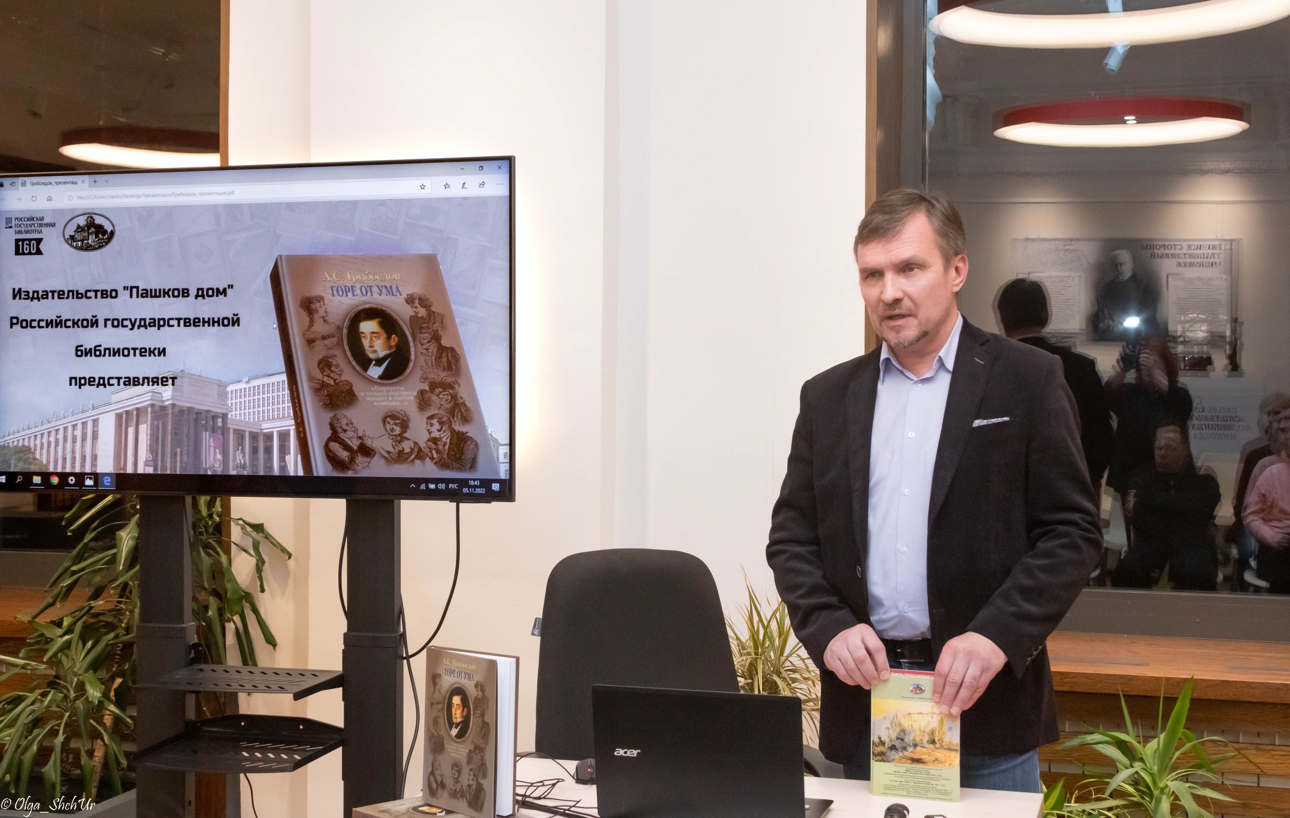 Очень символично, что презентация нового издания бессмертной комедии состоялась в одной из старейших библиотек Москвы, носящей имя А.С. Грибоедова. Она была учреждена еще в 1910 г. решением Московской городской думы для увековечения имени писателя. Более 100 лет сотрудники библиотеки бережно хранят и развивают традиции внимательного отношения к наследию великого драматурга: здесь не только собрана значительная коллекция редких изданий произведений А.С. Грибоедова, но и проходят многочисленные мероприятия, посвященные его жизни и творчеству, постоянно действует экспозиция, демонстрирующая посетителям библиотеки портреты, афиши, программы, книги и предметы быта, отражающие в исторической ретроспективе как деятельность А.С. Грибоедова, так и жизнь грибоедовской Москвы «в век нынешний и век минувший».