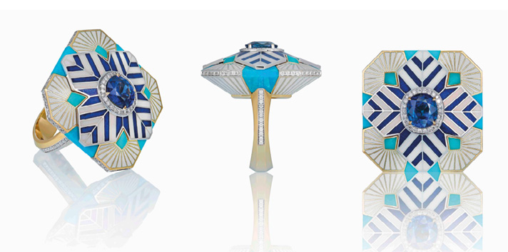 Кольцо «Утро в Самарканде» из коллекции «Самарканд» (2018). Золото, бриллианты, лазуриты, бирюза. Автор: Ильгиз Фазулзянов