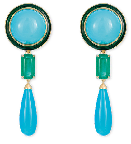 Серьги из коллекции «Самарканд» (2018). Золото, бирюза, изумруды. Автор: Ильгиз Фазулзянов