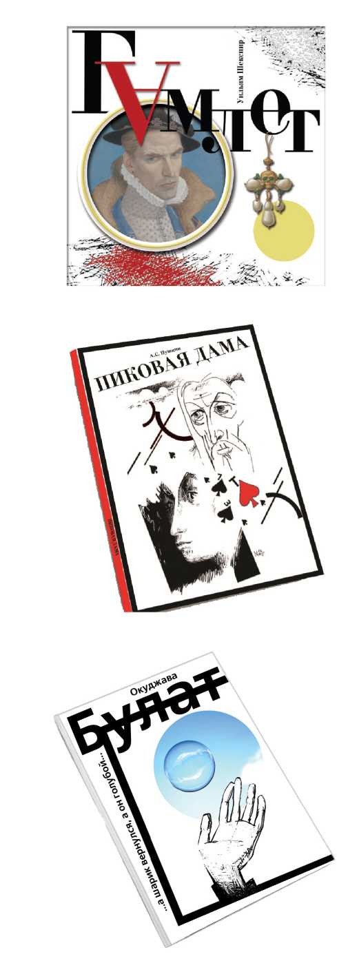 Белый цвет стал основой и для обложек шекспировского «Гамлета», «Пиковой дамы» А.С. Пушкина, издания его «Маленьких трагедий», книги стихов Б.Ш. Окуджавы и многих других произведений мировой литературной классики.