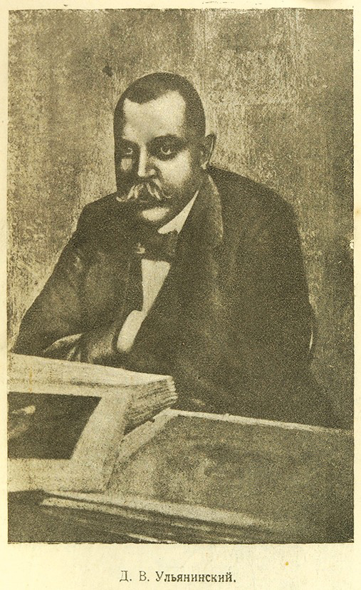 - Ul`yaninskij, N.Yu. (1927) D.V. Ul`yaninskij. (Opy`t xarakteristiki po lichny`m vospominaniyam, rukopisny`m i pechatny`m istochnikam) [D.V. Ulyaninsky. (Experience of Characterization According to Personal Memoirs, Handwritten and Printed Sources)]. Dmitrij Vasil`evich Ul`yaninskij: sbornik statej [Dmitry Vasilyevich Ulyaninsky: Collection of Articles]. Moscow: P. Vityazev Publishing House, 9-41. (In Russian).
