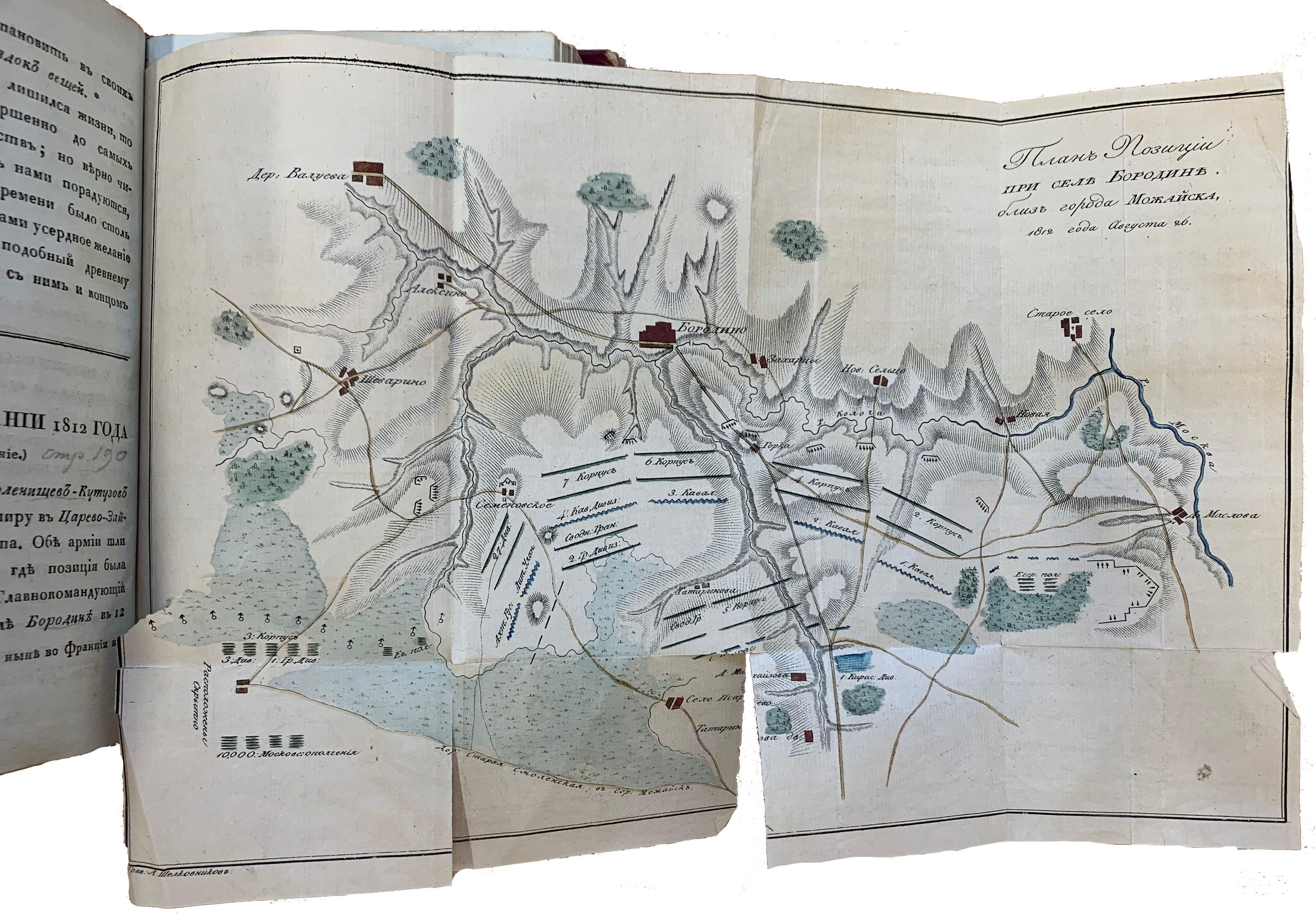 Рис. 8. Грав. А.М. Шелковников. План позиции при селе Бородине близ города Можайска, 1812 года августа 26 («Сын Отечества», 1812 г., Ч. 1, № 5). Резец, акварель. Лист – 31,5 х 21,6 см. Фото автора статьи