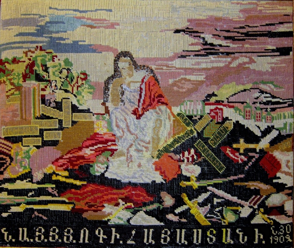 Ил. 3. Ковровое полотно «Дух Армении» (“ՈԳԻ ՀԱՅԱՍՏԱՆԻ”), 65х55 см. Автор: Анна Бахтамян (А.А. Иоаннесян), 30 ноября 1909 г., Самарканд