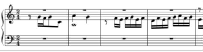 Редуцируя первый элемент баховской темы с характерной для него барочной фигурой circulatio (круг), композитор демонстрирует один из типов движения, который встречается в тематизме фуг И.С. Баха и состоит из последовательности восходящих кварт (символ бодрости, по Б.Л. Яворскому), изложенных от устойчивых ступеней. Один из подобных примеров – тема фуги из малого цикла Токката и фуга d-moll («Дорийская», BWV 538), в которой, однако, квартовые скачки являются ямбическими, тогда как в теме фуги Римского-Корсакова – хореическими (на чередовании ямбических и хореических восходящих кварт основана тема фуги А-dur из I тома «Хорошо темперированного клавира»).