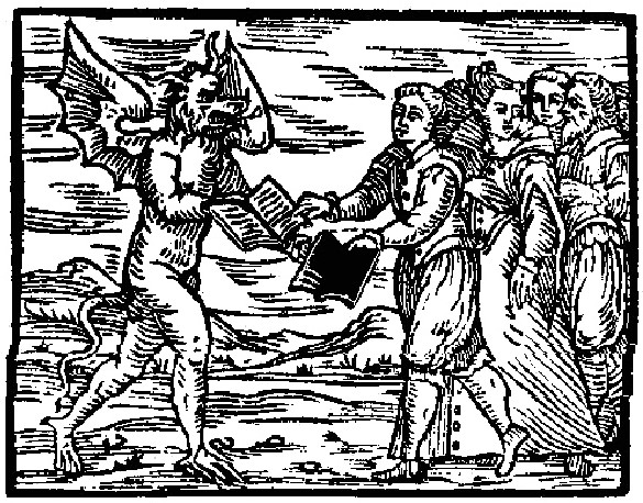 Ил. 1. Получение ведьмами «черных книг». Трактат «Молот ведьм». 1487. Ксилография. Факсимиле. Из открытых интернет-источников