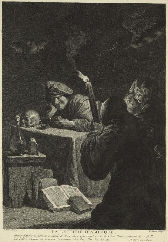 Ил. 5. Гравюра Пьера-Франсуа Базана «Бесовское чтение». Середина XVIII в. Офорт, резец. Москва. Частная коллекция
