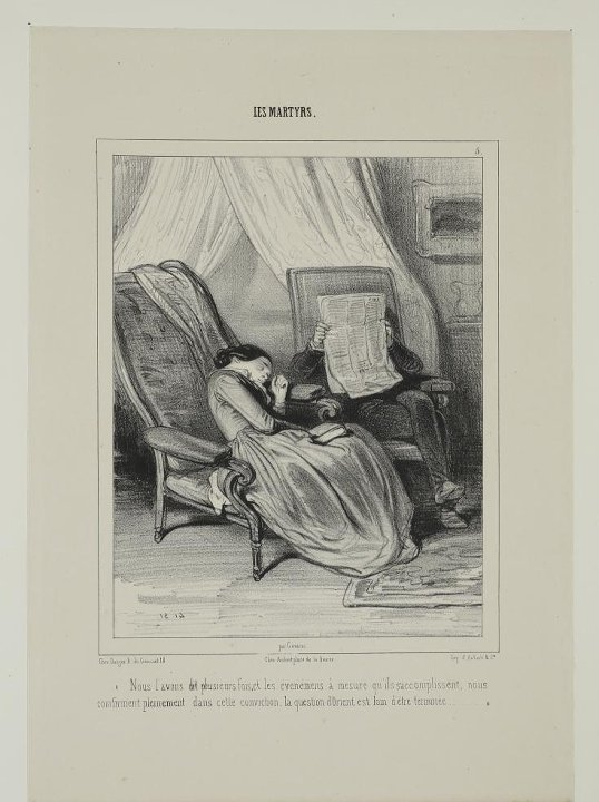 Ил. 12. Гаварни. Чтение газеты жене. Литография из серии «Мученики». Лист. 4. 1847. Москва. Частное собрание