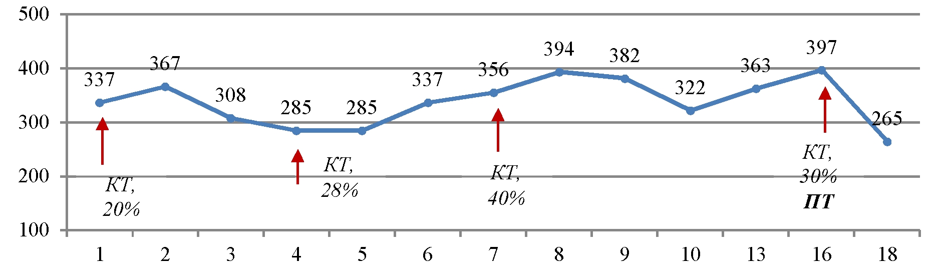Рисунок 4. Динамика уровня лактатдегидрогеназы, ед/л