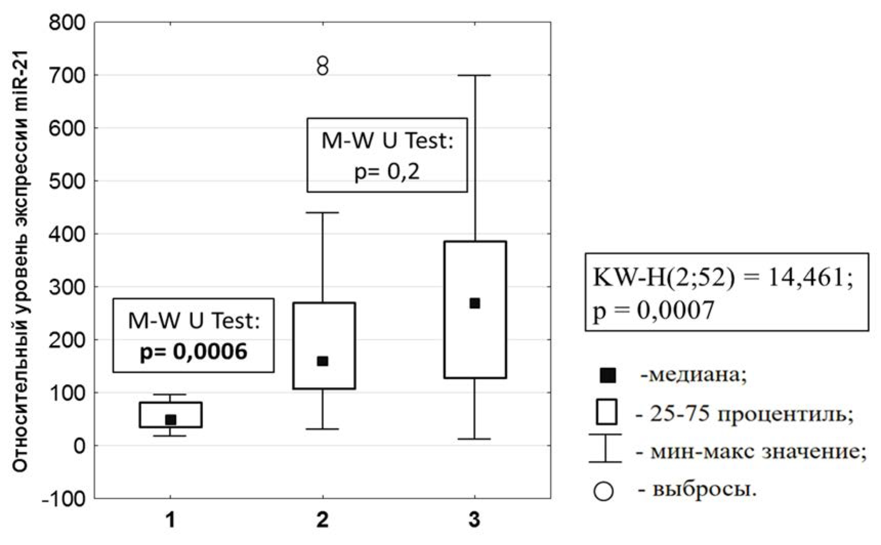 Уровень относительной экспрессии miR-21 | 0,31 | 0,38 | 1,00 |